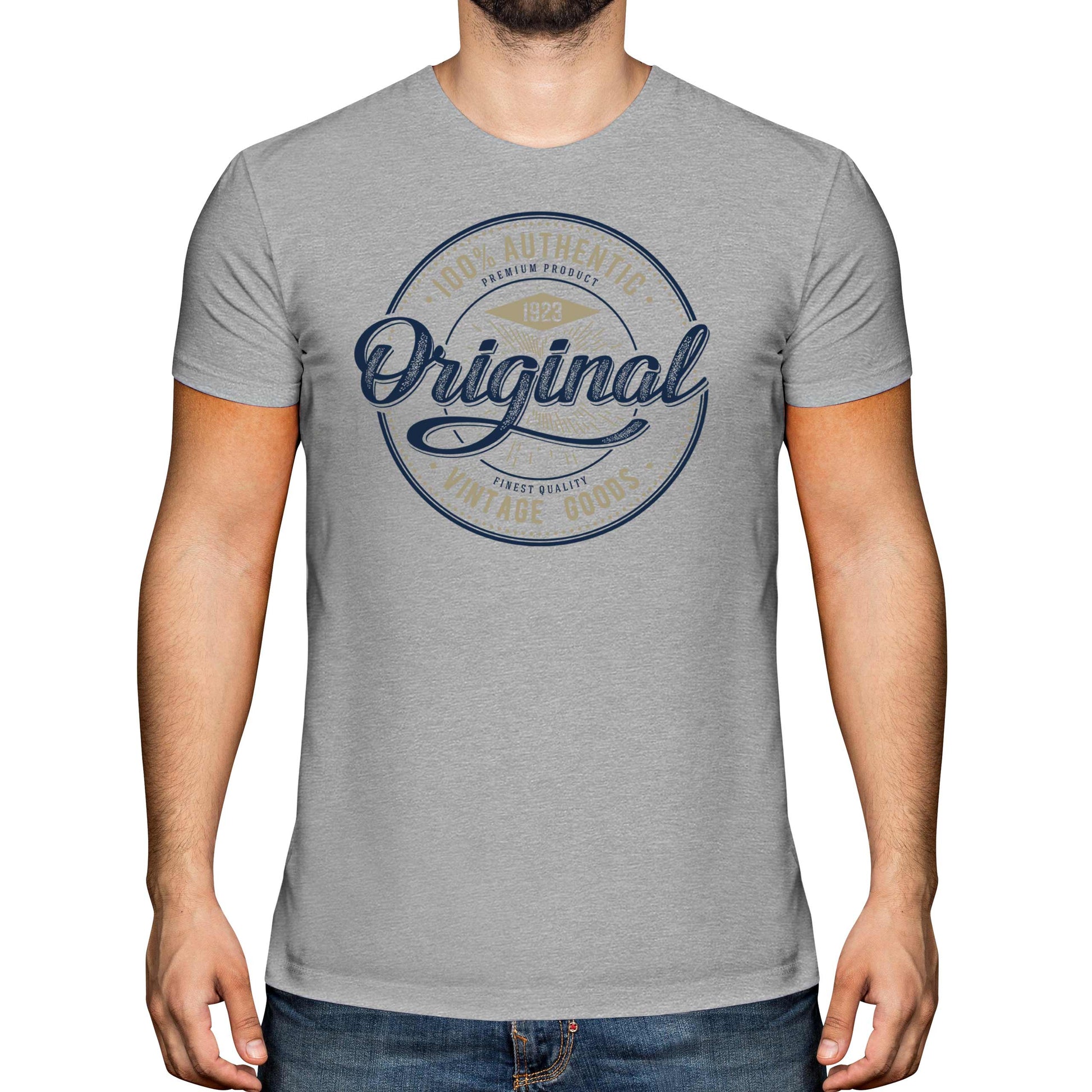 Celebrate a milestone year with this men’s '1923 Original Goods' vintage T-shirt. Featuring a retro logo design and soft cotton comfort, it’s the perfect 102nd birthday gift for dads, grandads or friends born in 1923 who appreciate timeless style and classic quality.