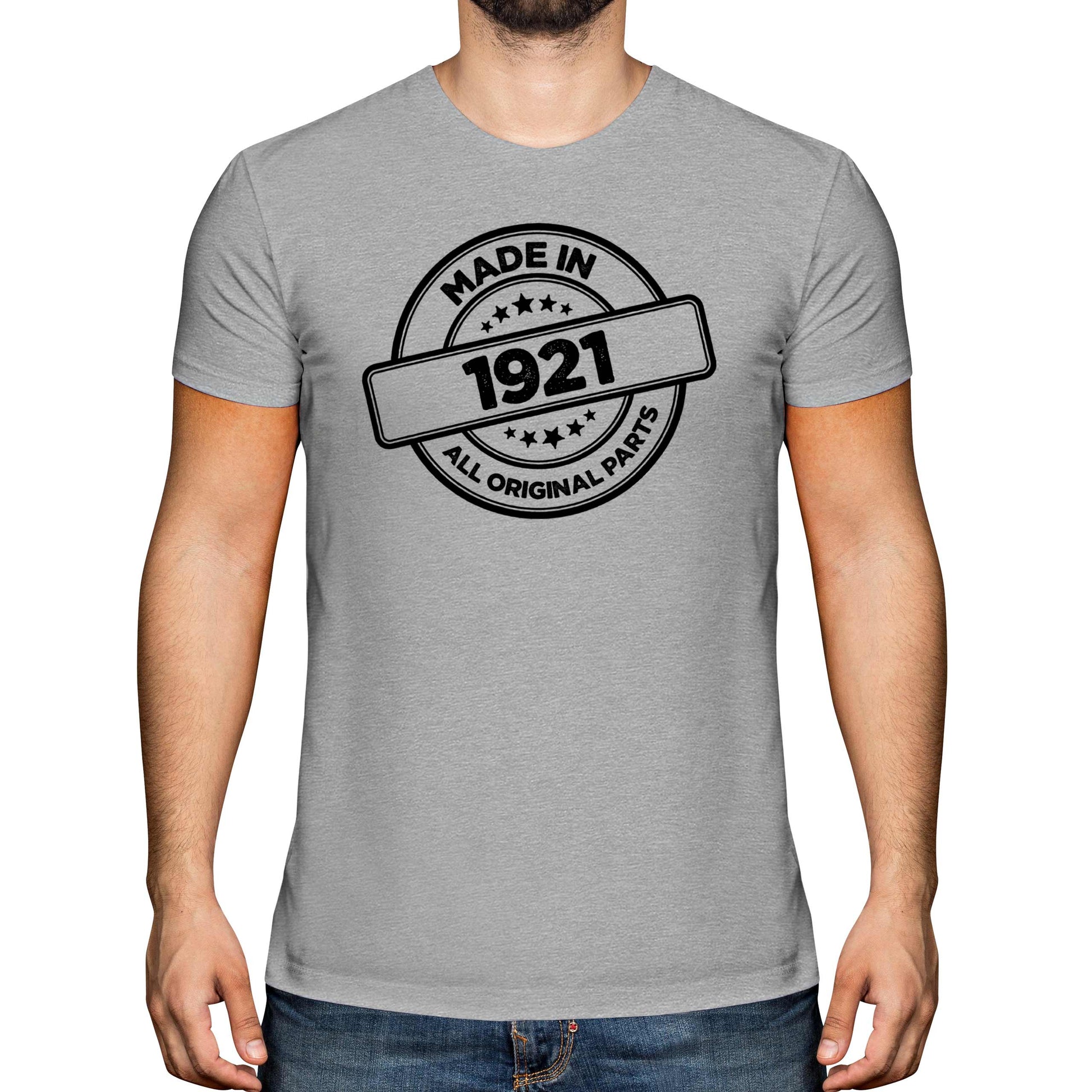 Celebrate a milestone year with this men’s 'Made in 1921' T-Shirt. Featuring a distressed stamp style print and soft cotton comfort, it’s the perfect 104th birthday gift for dads, grandads or friends born in 1921 who appreciate timeless style and classic quality.