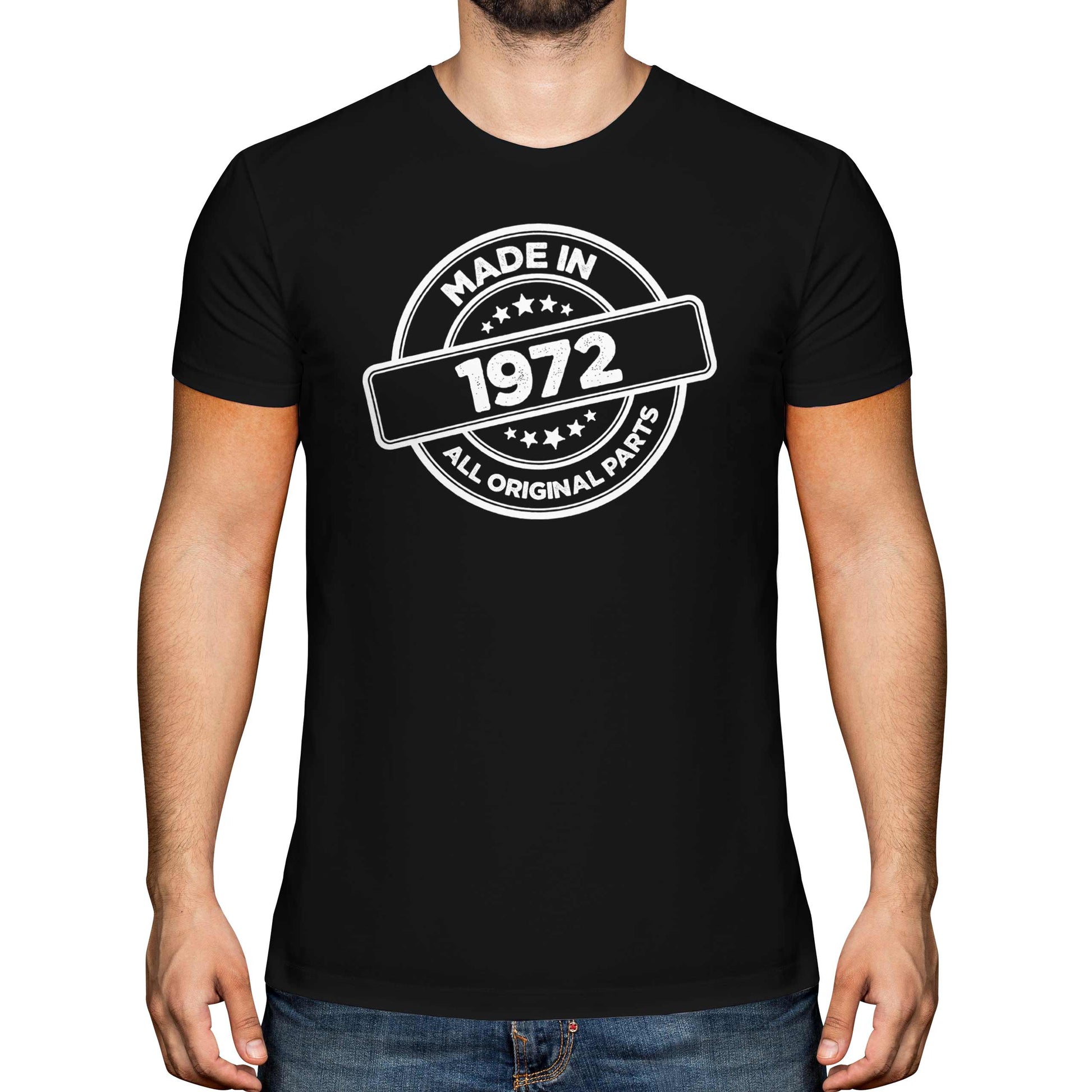 Celebrate a milestone year with this men’s 'Made in 1972' T-Shirt. Featuring a distressed stamp style print and soft cotton comfort, it’s the perfect 53rd birthday gift for dads, grandads or friends born in 1972 who appreciate timeless style and classic quality.