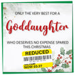 Funny Christmas Card for Goddaughter, Reduced Sticker